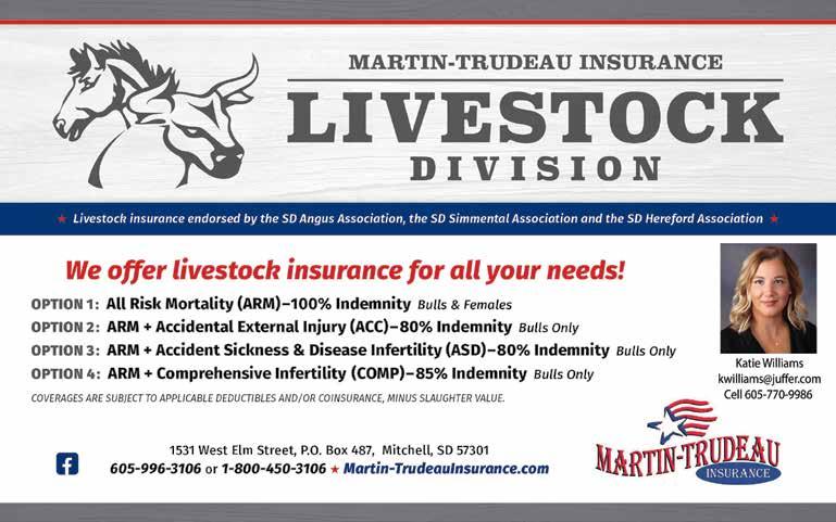 LIVESTOCK MORTALITY INSURANCE: To properly insure your investment, Katie Williams of Martin-Trudeau Insurance will be available to assist you with mortality insurance coverage (605) 770-9986.