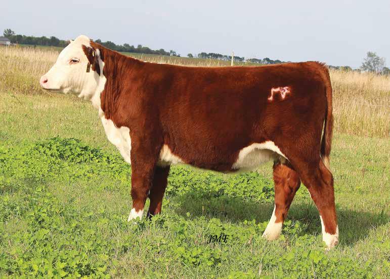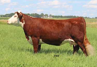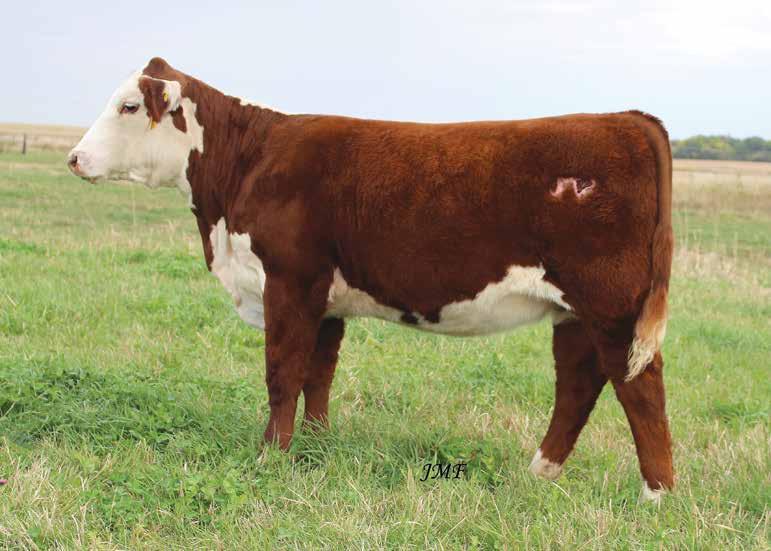 CE 3.7 BW 2.4 WW 49 YW 74 MILK 27 M&G 52 SC 0.8 MCE 2.4 UDDR 1.30 TEAT 1.30 TH RANGELINE 719T VICTOR 735D FHF T81 NATE’S LADY 44X SIRE: JMF 35D COWBOY 44X 038H PYRAMID SUNDANCE 4053 ET DAM: FHF 4053 RUBY 133E FHF 0343 RUBY 15U REG # 44387466 DOB: 2-22-22 ACT. BW: 78 P JMF 038H MS WESTERN 133E 231K BASE PRICE: $2500 Open heifer. 038H “Westerner” daughter with a sharp fancy look. JUNIORSdon’t forget that Nationals are in Wisconsin next summer! This lady could wear a halter very well. Above all she could be a great start to a cowherd. CE 9.5 BW 0.7 WW 49 YW 71 MILK 24 M&G 48 SC 1.4 MCE 6.8 UDDR 1.40 TEAT 1.50 FHF 4029 HICKOK 15X FHF 9116 POLLY 66Z SIRE: JMF 15X MESA 612D TH RANGELINE 719T VICTOR 735D DAM: JMF 35D COWGIRL 713E 910G JMF 15X CALAMITY 1210 713E REG # 44387475 DOB: 3-16-22 ACT. BW: 70 P