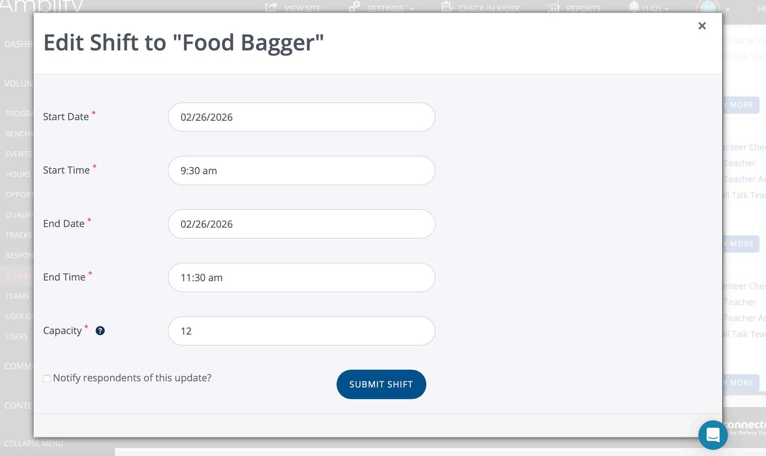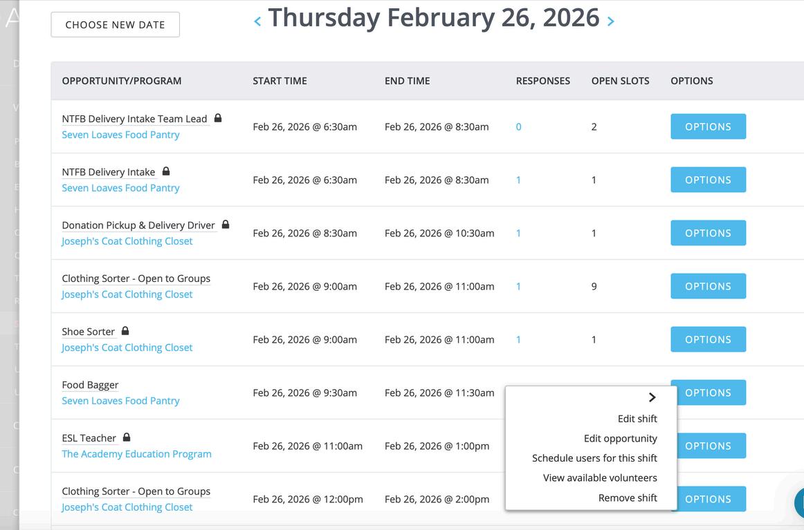 Please do not make updates to shifts or opportunities. Volunteer Services will help you with these requests.