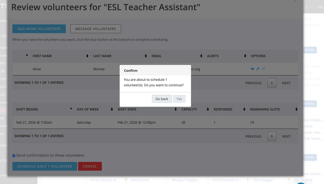 Click “schedule only 1 volunteer”