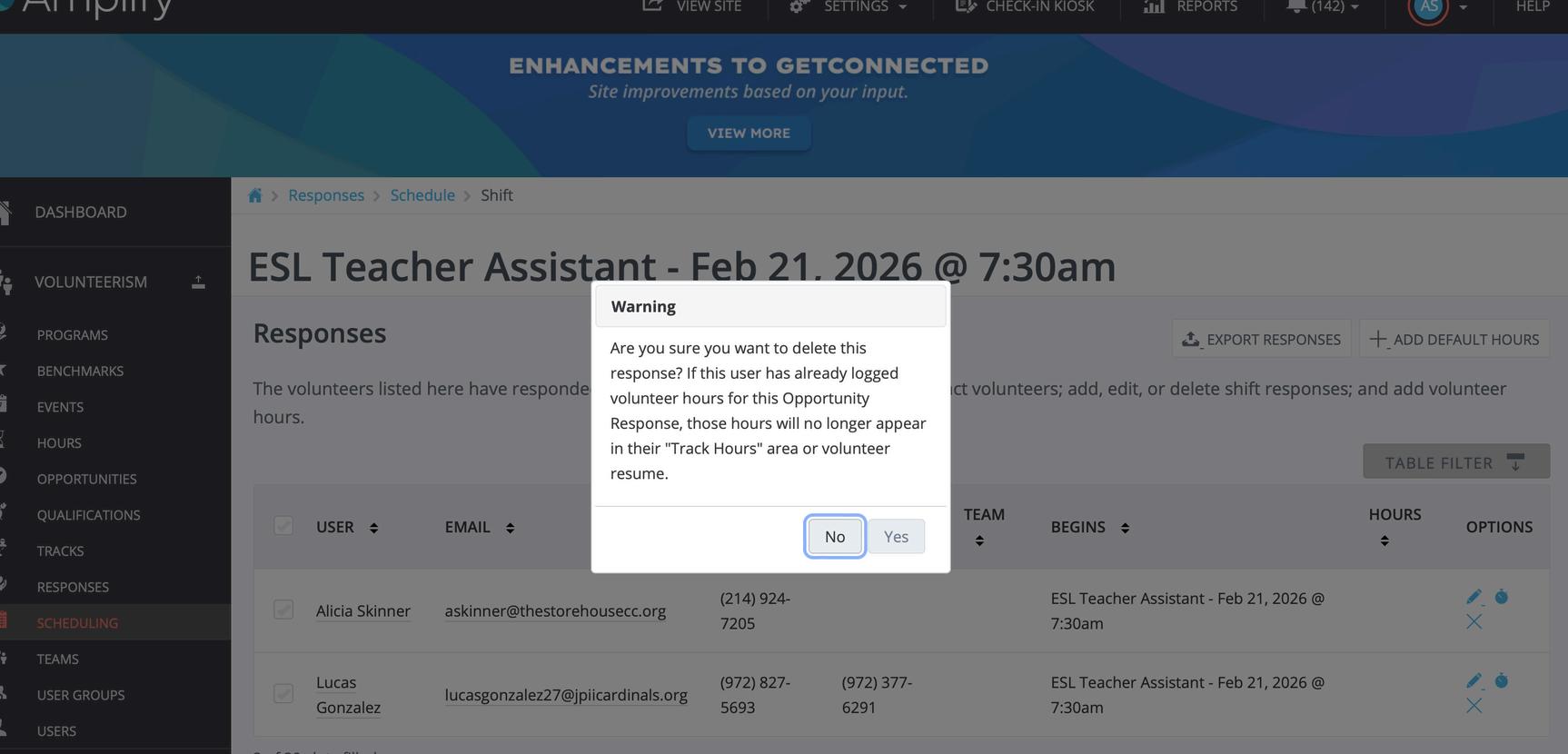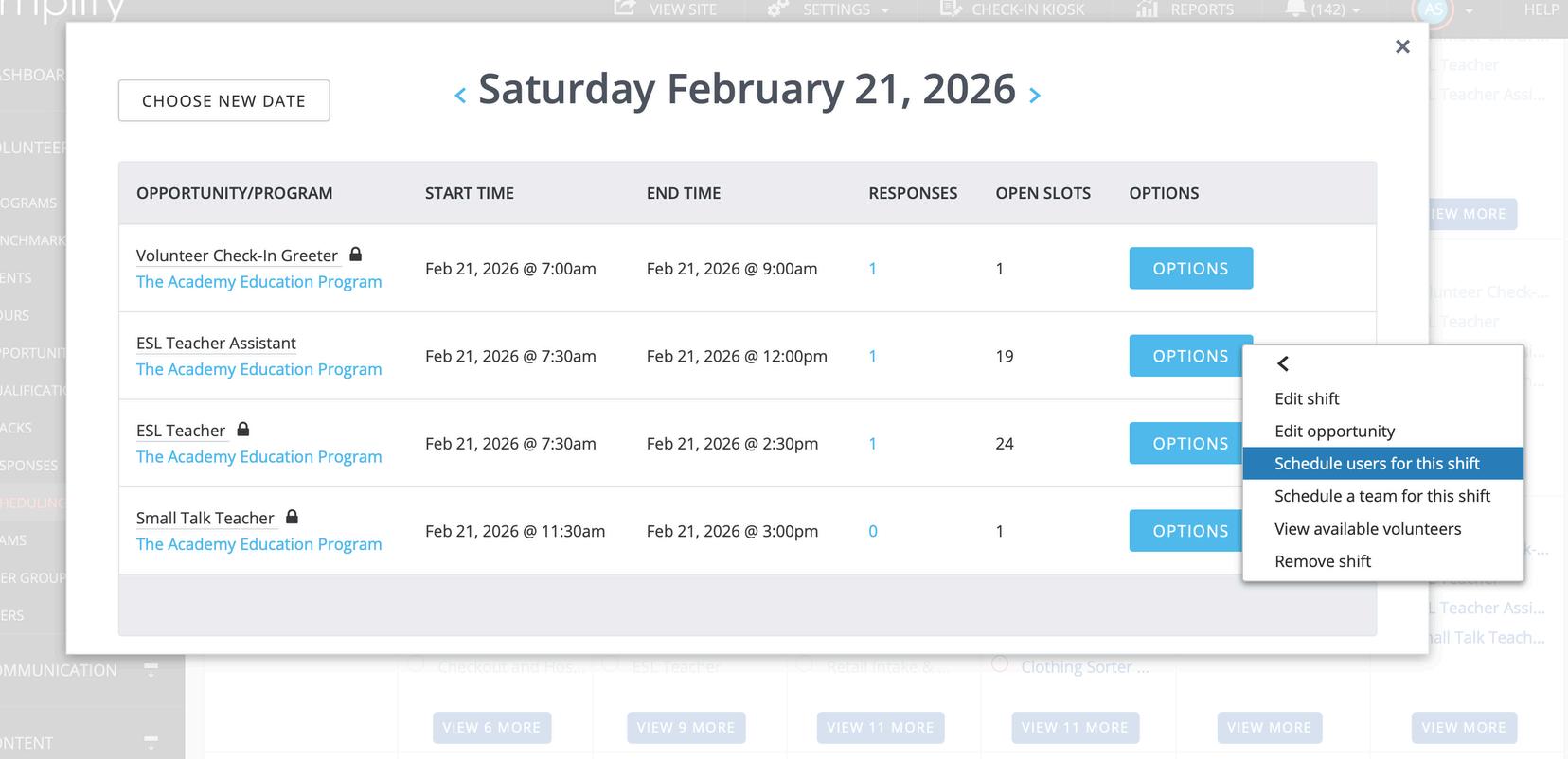 Volunteerism - Scheduling