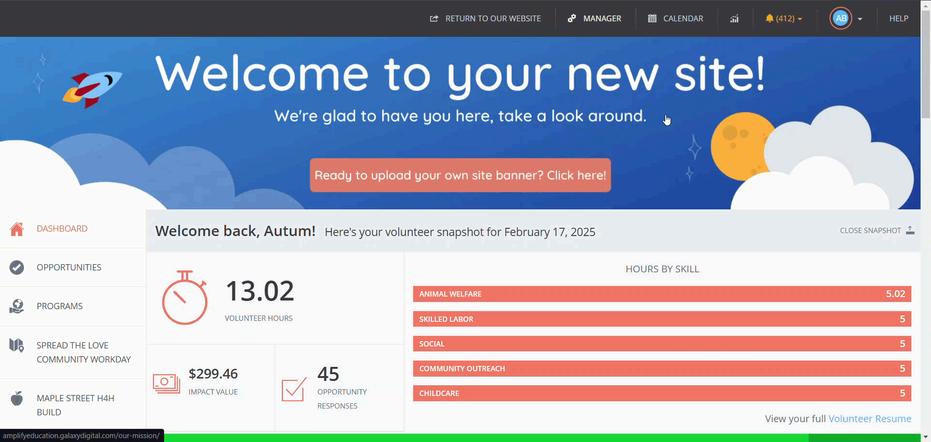 1.Click View Site in your top menu to switch to the volunteer view.