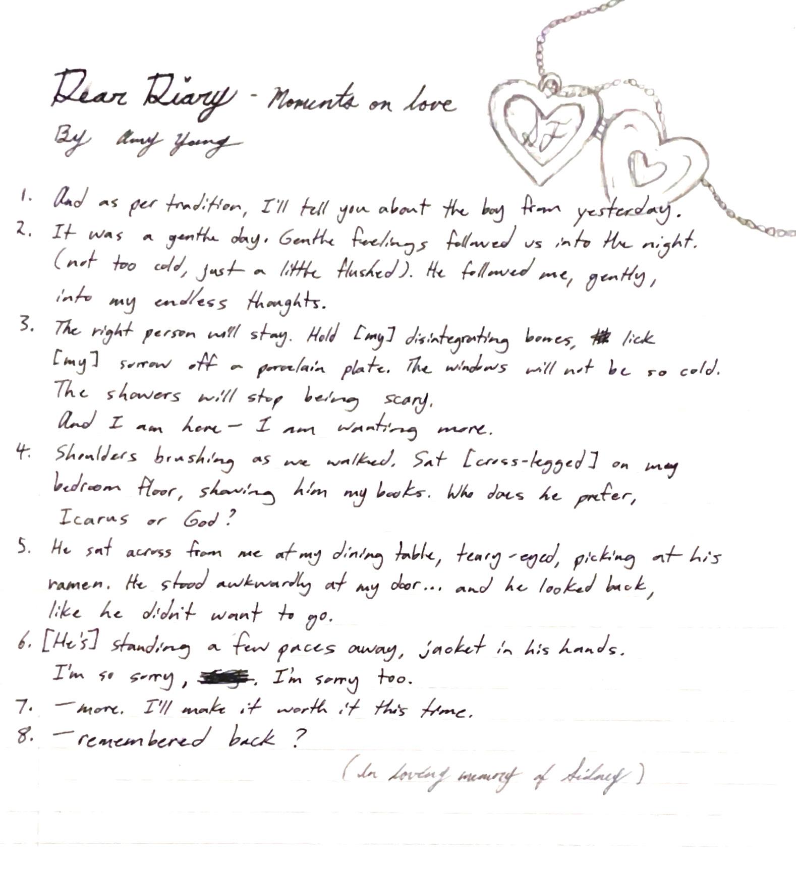 Then you uttered your words clearly again, asking me to understand them –as if they didn’t choke me everytime I thought about you.