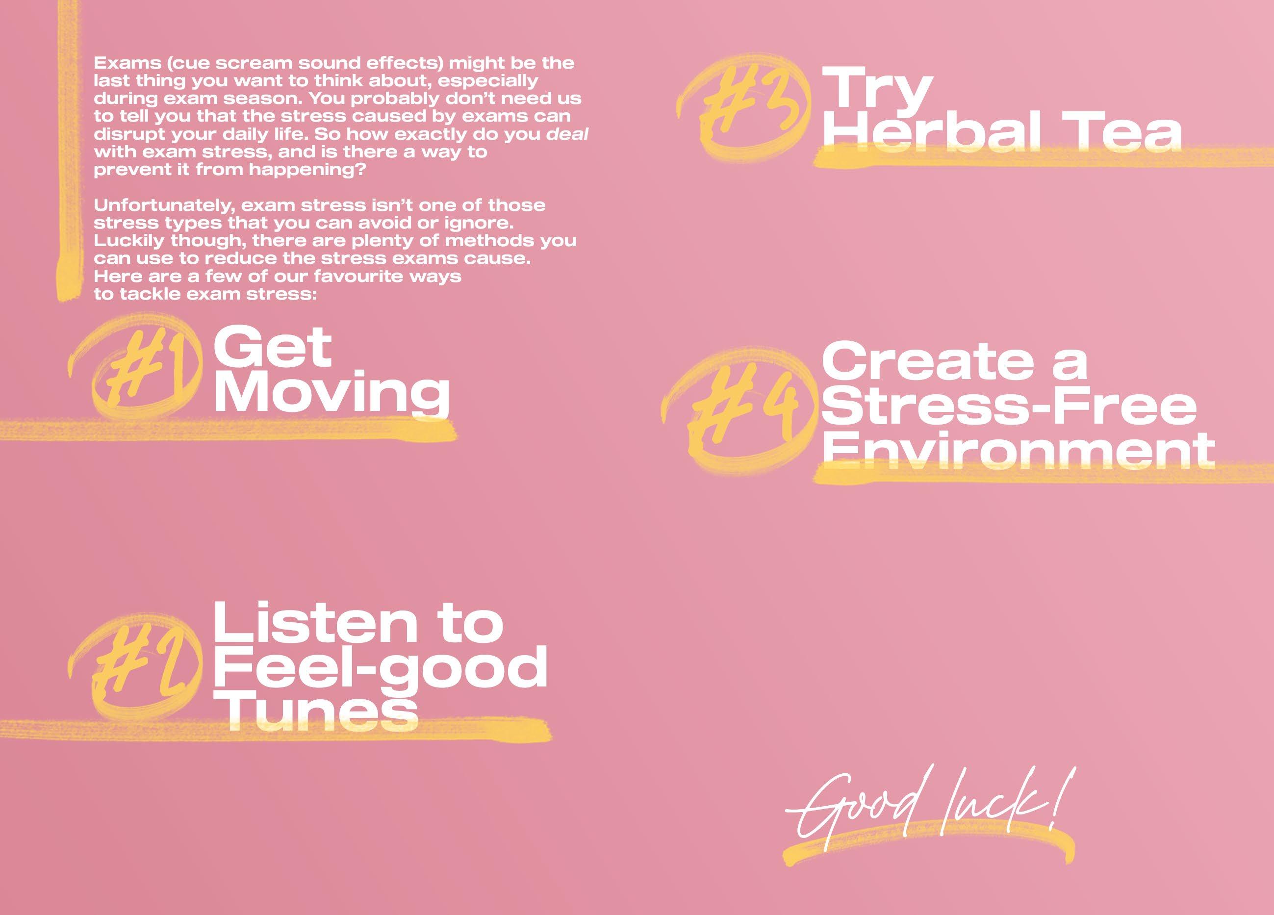 Exams are never fun for anyone. The tedious hours of revision, those terrifying last-minute panics and the anxiety surrounding post-exam convos with your friends are enough to ll anyone with dread. Hopefully, though, these tips will help you breathe a little easier and allow you to get some much-needed rest.