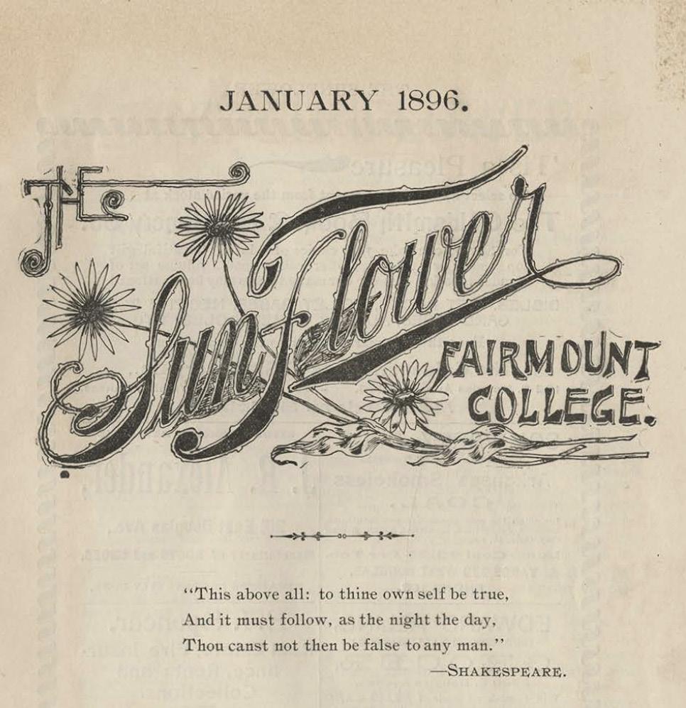 1896 THE SUNFLOWER PUBLISHES FIRST ISSUE In January, The Sunflower published its first issue. Originally it was a bi-monthly literary journal produced in Fairmount Hall.