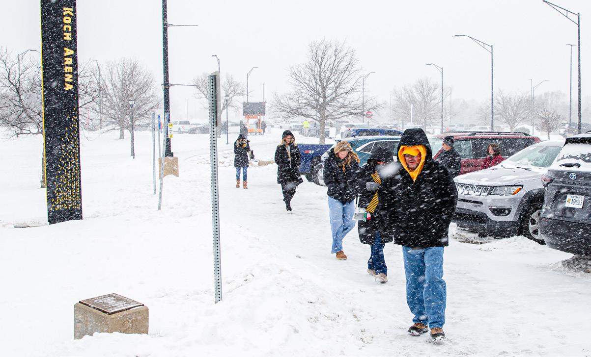 Shocker fans walk through the snow to get to Charles Koch Arena. The game organizers called for a yellow-out from the crowd. Photo by Zachary Ruth / The Sunflower