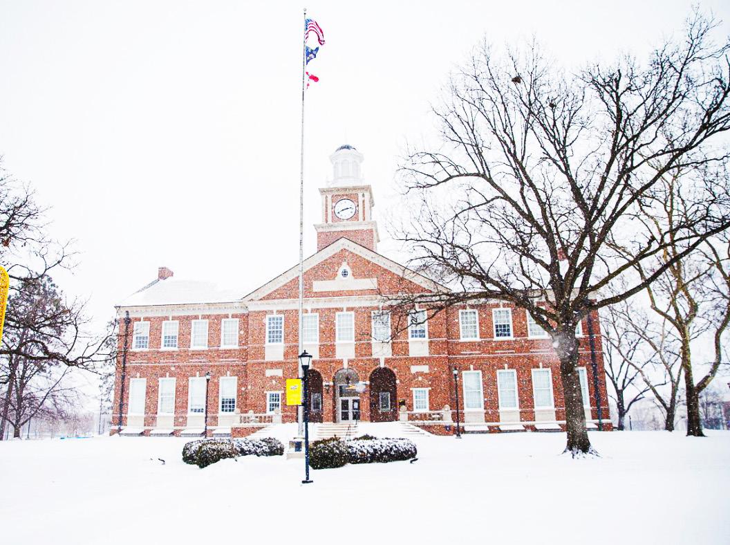 A snow-covered Morrison Hall at Wichita State University on Jan. 24. The building is named after Nathan Morrison, the founding university president . Photo by Zachary Ruth / The Sunflower