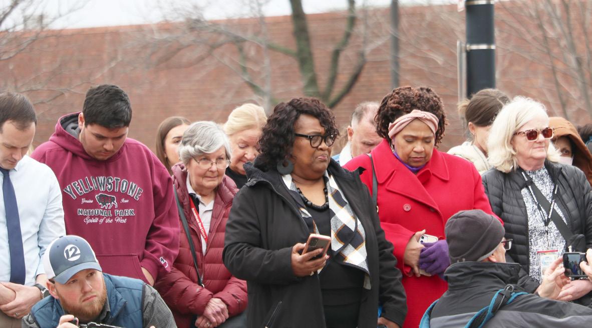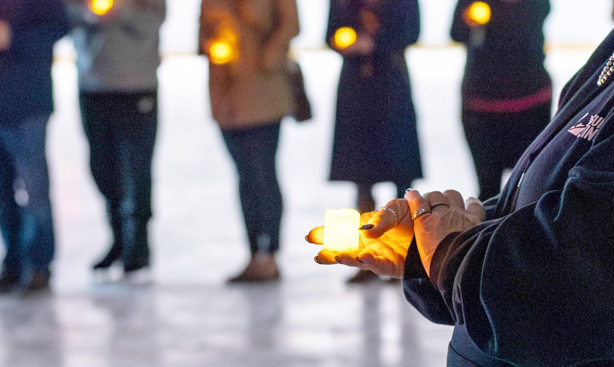A moment of silence is held at Butler County Community College for professor Lindsey Fields.