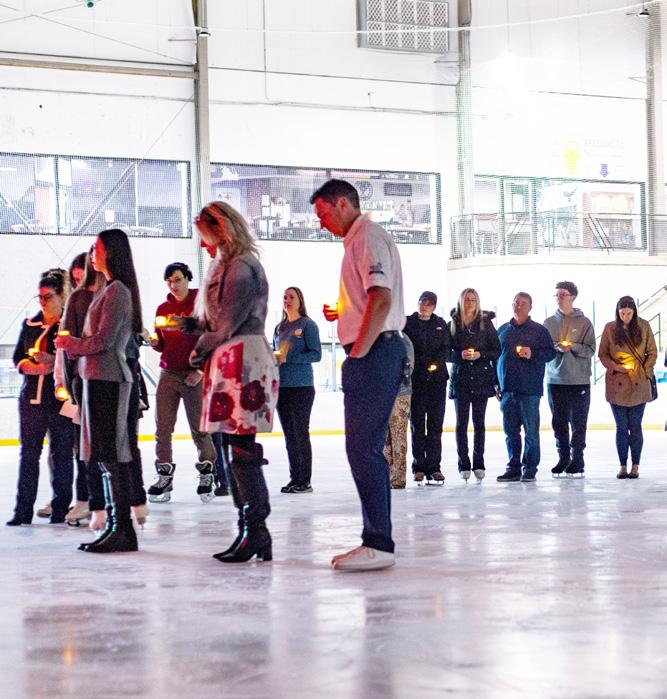 A vigil is held at Wichita Ice Center, where figure skaters participated in training before the crash. Eleven youth skaters died.