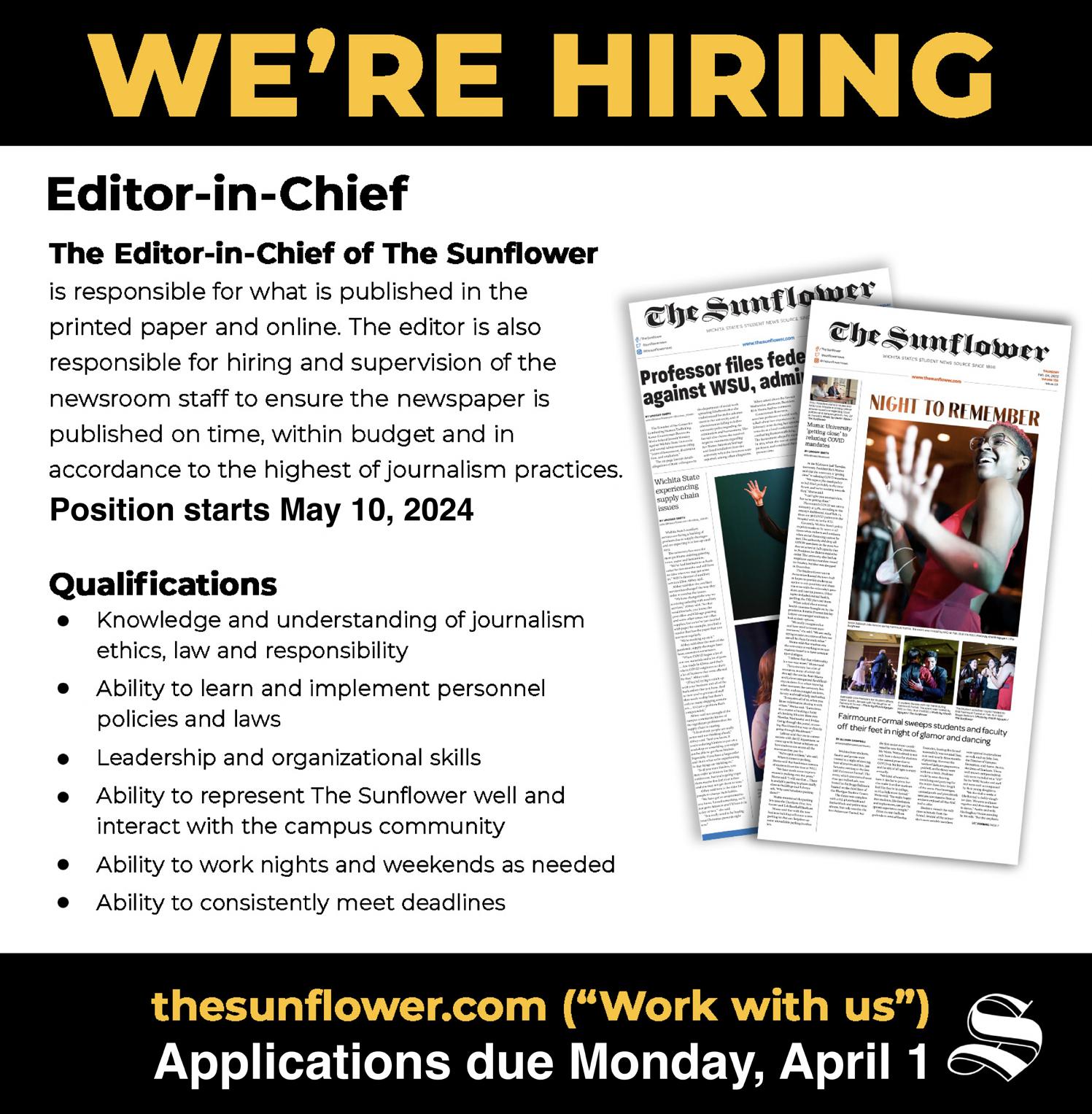 WICHITA STATE UNIVERSITY’S STUDENT NEWS SOURCE SINCE 1896 www.thesunflower.com March 28, 2024 Volume 128 Issue 25