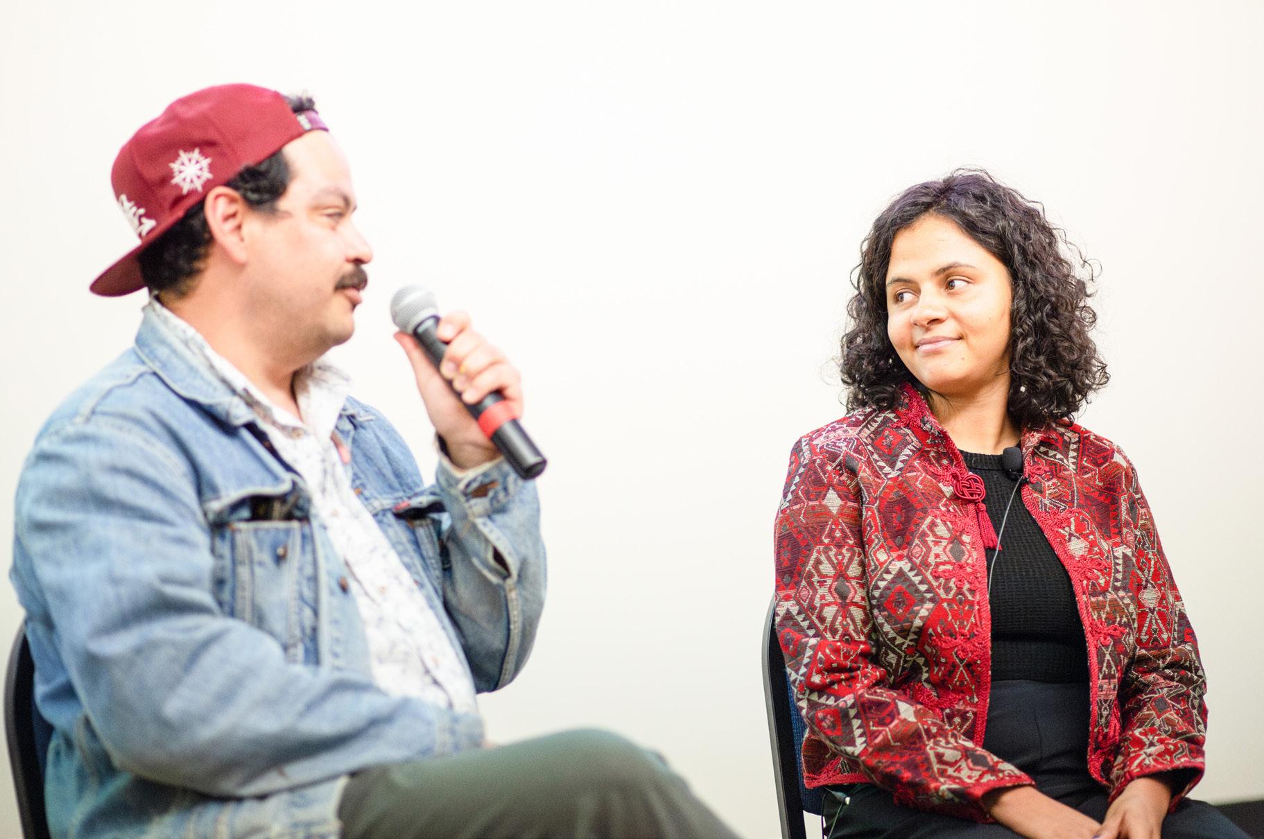 In a part-English, part-Spanish and part-Spanglish discussion hosted by the Ulrich Museum of Art, Wichita artist Armando Minjarez and GLeo discussed their collaborative process in the past and how it will extend to the planned mural.