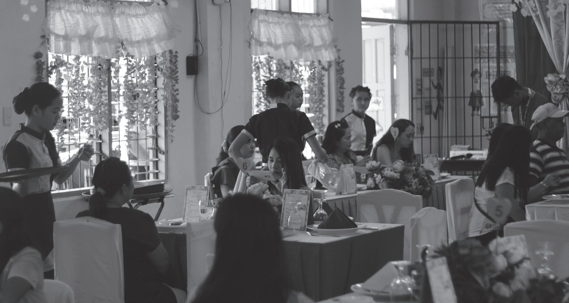 ibang course meal, pagsisilbi sa mga bisita, pagbibigay sa kanila ng facial treatment, at paglalagay ng mga booth upang makakuha sila ng mga litrato.