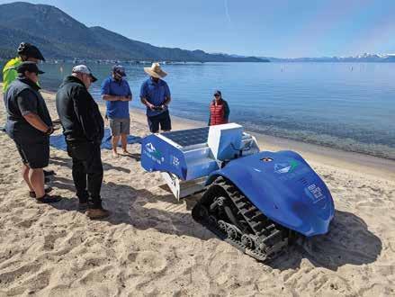 THIS SUMMER, at both public and private beaches along the North Shore of Lake Tahoe, the BEBOT all-electric sand sifting robot will be out removing debris from beach sand up to a depth of four inches, removing plastics, organic and inorganic debris, in a critical e ort to maintaining Lake Tahoe’s renowned water quality and clarity. BEBOT is integral to combating litter buried beneath the surface of Tahoe’s beaches, including the plastic trash that breaks down into microplastics and becomes impossible to remove.