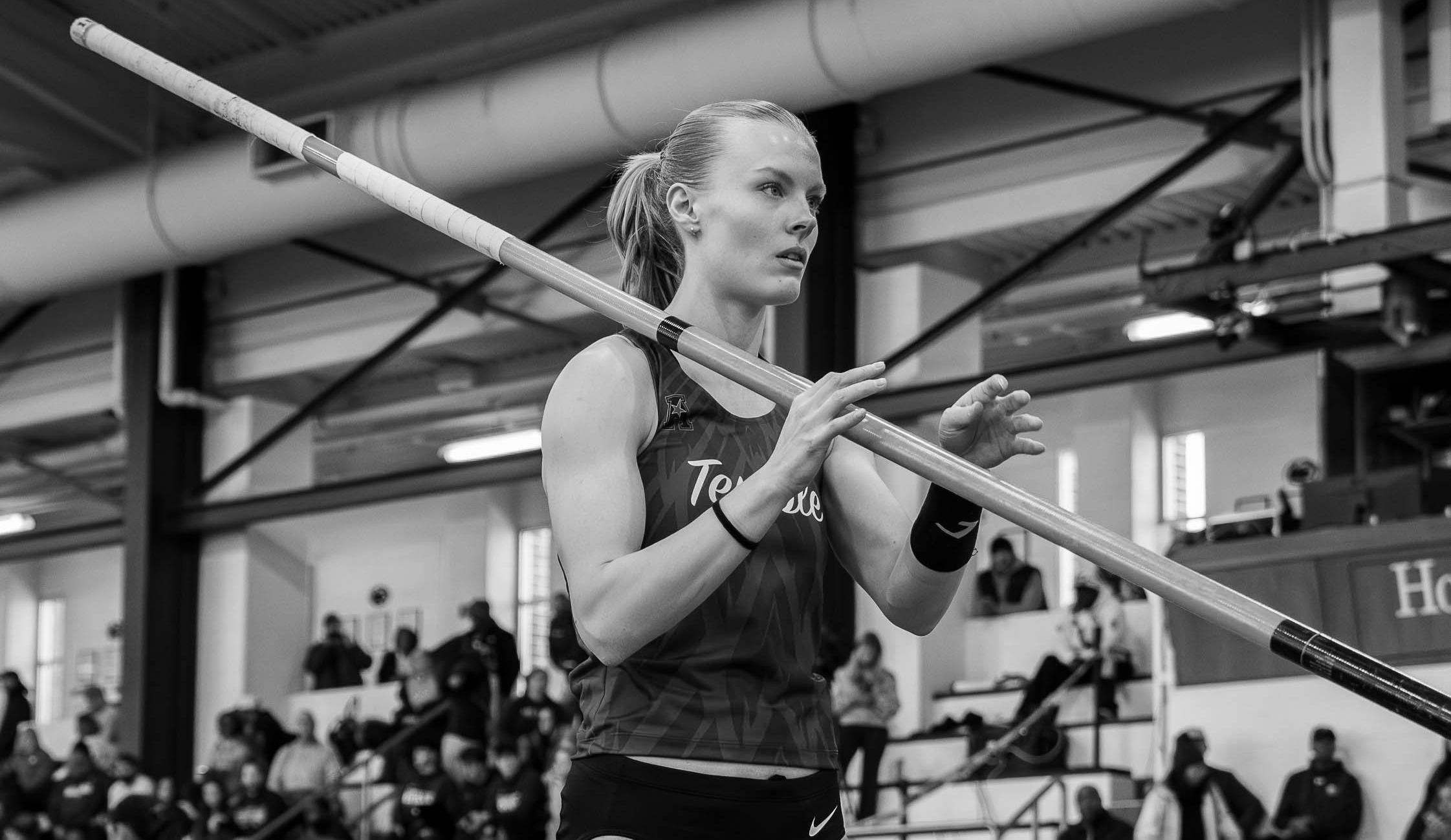 She tied the program’s indoor pole vault record at the Sykes & Sabock Challenge on Feb. 7 and believes she can do even better. The pole vaulter has her sights set on more success with a yearand-a-half left to compete.