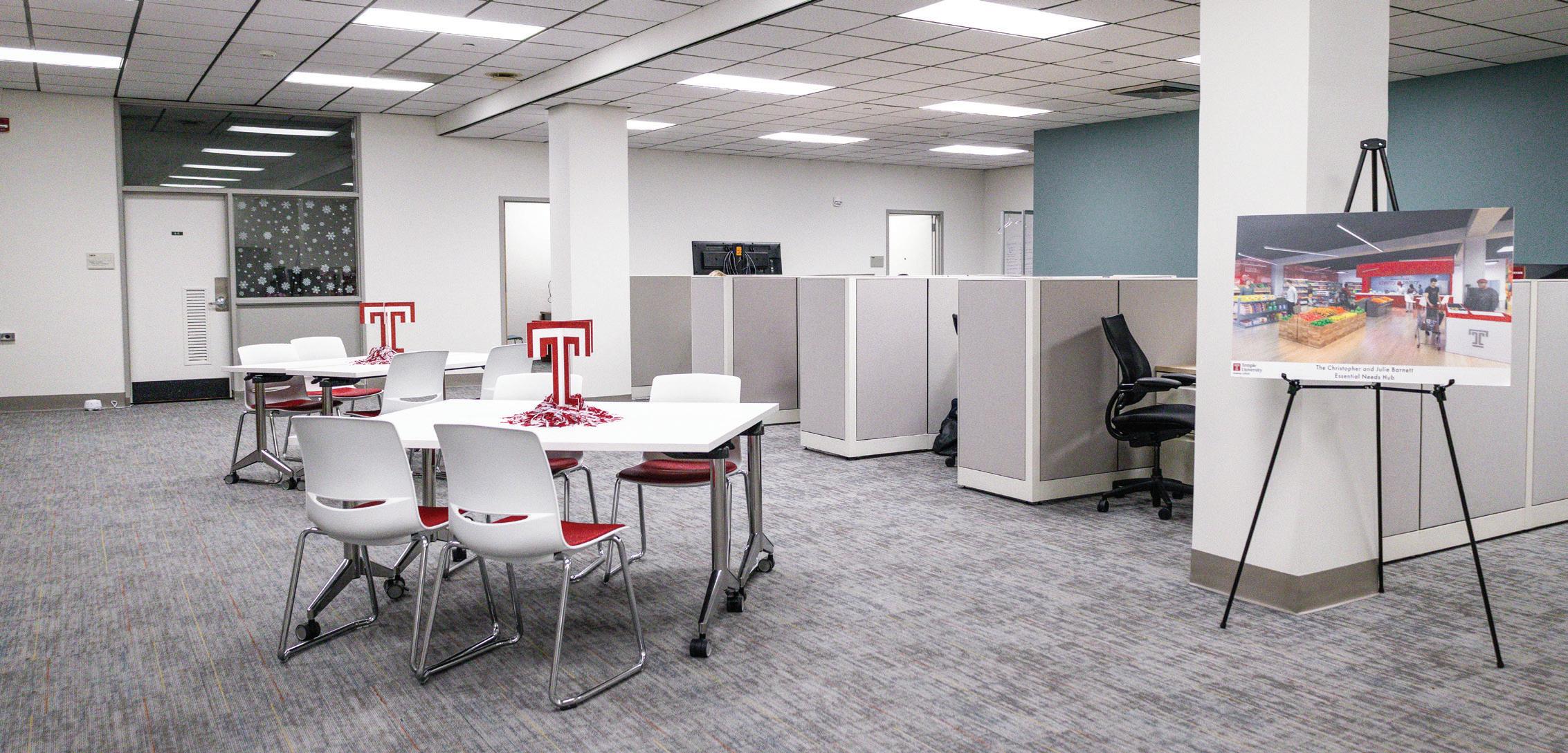 The Hub launched in October 2025 after a $5 million gift from Christopher Barnett, opening a classroom, programming space and bringing in staff to address issues like off-campus living and crisis management. The second phase of the project opens in the fall, following the renovation of the 26,000-squarefoot site of the former Temple bookstore in the basement of the Student Center.