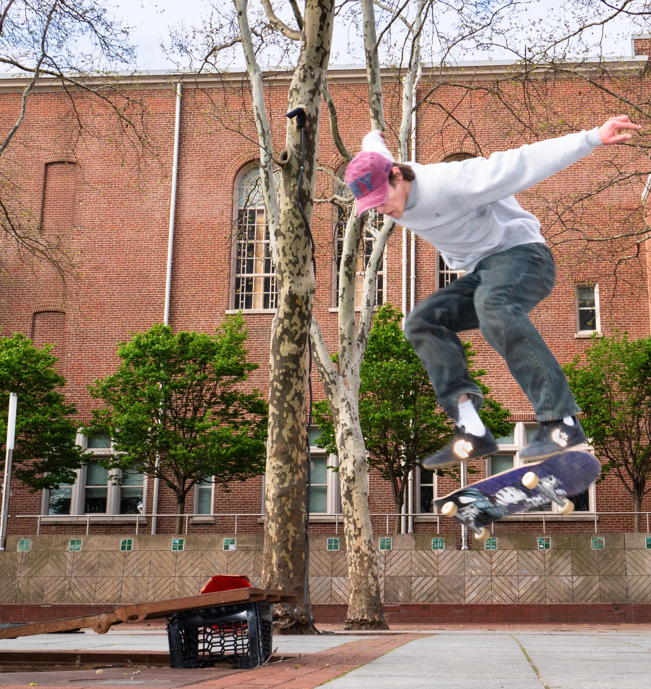 Sebastian Sessa skates over the kicker at the Cecil B. Moore plaza.