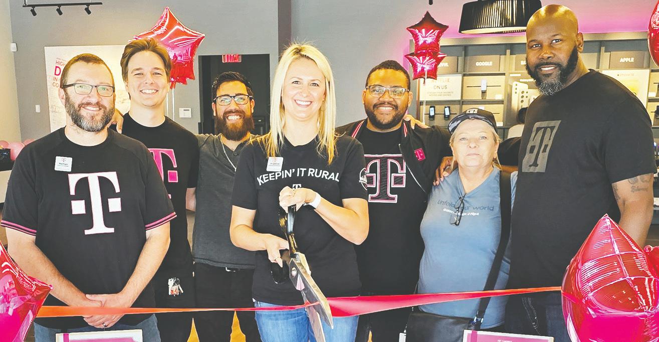Nathan Clifford, David Seid, Ian Valentine, Angelina Sulejmanovic (scissors), Bryan Jones, Debbie Mihalko and Donte Perry Angelina Sulejmanovic cut a ribbon at T-Mobile INC