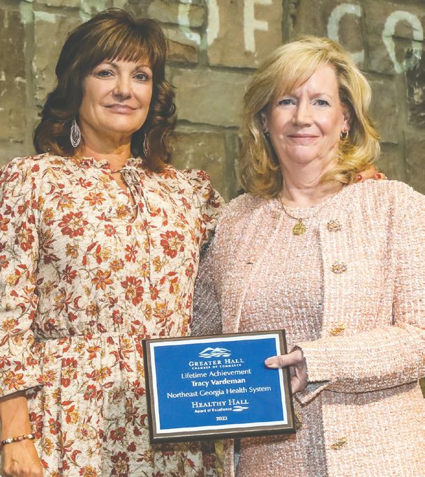 Tracy Vardeman (left) was recognized with the Healthy Hall Lifetime Achievement Award for a 30 year career at Northeast Georgia Health System. Philip Wilheit (right) was presented the Healthy Hall Visionary Award.