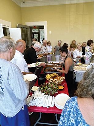 A crowd of about 50 people enjoyed hotdogs, hamburgers, fried chicken, baked potatoes, pasta salad and fresh melons in Reunion’s Meeting House.