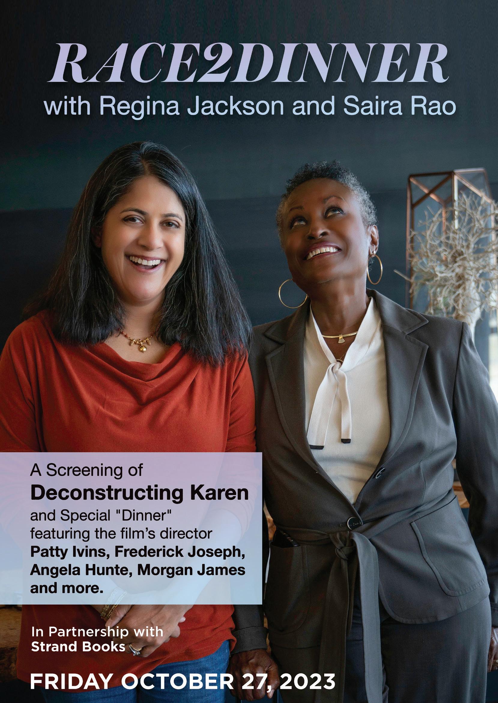 Since its founding as a nexus for the women’s suffrage movement over a century ago, The Town Hall has been New York City’s premier venue for considering difficult questions of race, economics, and gender. In the spirit of historically famous conversations with social justice luminaries such as Langston Hughes, Claire Boothe Luce, Emma Goldman, Germaine Greer, and Lorraine Hansberry, tonight’s event is an open forum headlined by the political activists Regina Jackson and Saira Rao, joined onstage by the Emmy-winning director Patty Ivins, New York Times Bestselling author Frederick Joseph, and Grammy award winner Angela Hunte. The evening includes a screening of Ivins’ documentary film Deconstructing Karen, exploring Jackson and Rao’s New York Times bestselling book White Women and their provocative Race2Dinner project, designed to inspire white women to confront and acknowledge their own ingrained racism and complicity in white supremacy.