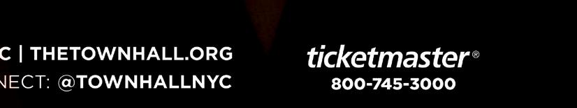 Welcome! And, may I add, congratulations. You are attending one of New York’s and America’s essential meeting houses, music venues and cultural institutions. I know that you will find the Town Hall Presents programming you are attending tonight to be timely and compelling. And each of our productions is an expression of our commitment to bring you significant, unique, eclectic and down right delightful events throughout the calendar year.
