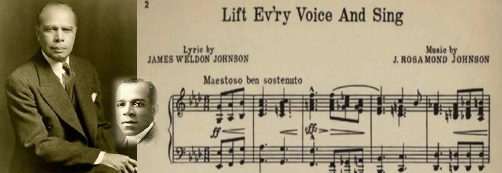 Often referred to as “The Black National Anthem,” Lift Ev’ry Voice and Sing was a hymn written as a poem by NAACP leader James Weldon Johnson in 1900. His brother, John Rosamond Johnson (1873-1954), composed the music for the lyrics. A choir of 500 schoolchildren at the segregated Stanton School, where James Weldon Johnson was principal, first performed the song in public in Jacksonville, Florida, to celebrate President Abraham Lincoln’s birthday.