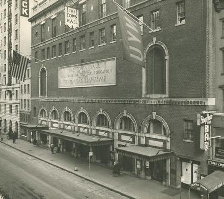The Town Hall was built in 1921 by the League for Political Education, a suffragist group who believed in the power of education, and that informed citizens were responsible citizens. Originally intended as a speaker’s hall, The Town Hall offered courses and lectures to the public. Notables who spoke at Town Hall included Pearl Buck , Theodore Roosevelt , Langston Hughes , Woodrow Wilson , Henry James , Anne O’Hare McCormick , Thomas Mann , Booker T. Washington , William Butler Yeats , Amy Lowell , Margaret Bourke White , William Jennings Bryan , Ellen Terry , Maude Adams , Jane Addams , Rabindranath Tagore , Winston Churchill , John Galsworthy and Maurice Maeterlinck .