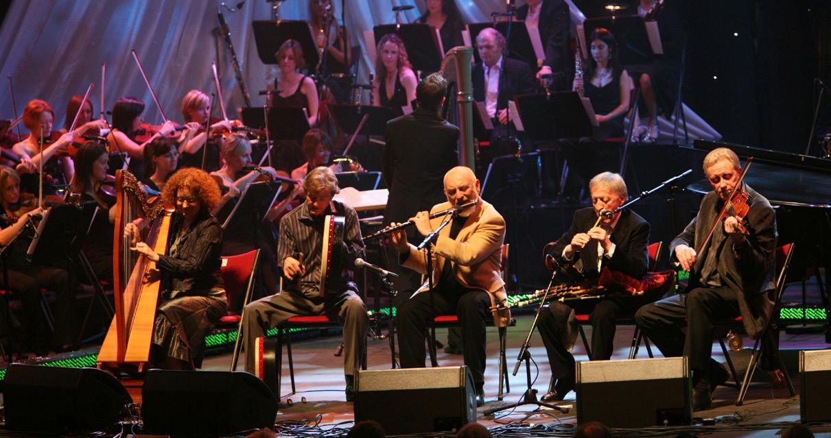 The six-time gRammY award winners are unsurpassed for their ability to transcend musical boundaries, blending irish tradition with global innovation. in the process, they have become one of the most revered groups on the world stage. as cultural ambassadors, their performances have been linked with seminal historic events: they were the first Western musicians to perform on the great Wall of China, the first ensemble to perform a concert in the Capitol building in Washington, DC, and joined Roger Waters for a performance of “The Wall” in berlin in 1990. in 2010, paddy moloney’s flute and matt molloy’s flute traveled with NaSa astronaut Cady Colmen to the international space station. The group won an academy award for their soundtrack to Stanley kubrick’s 1975 film, barry lyndon.