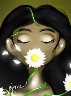 Cheerful voices! The crowd is loud And she was not. She bows her head And fakes a smile Her tears inside Are nothing to hide.
