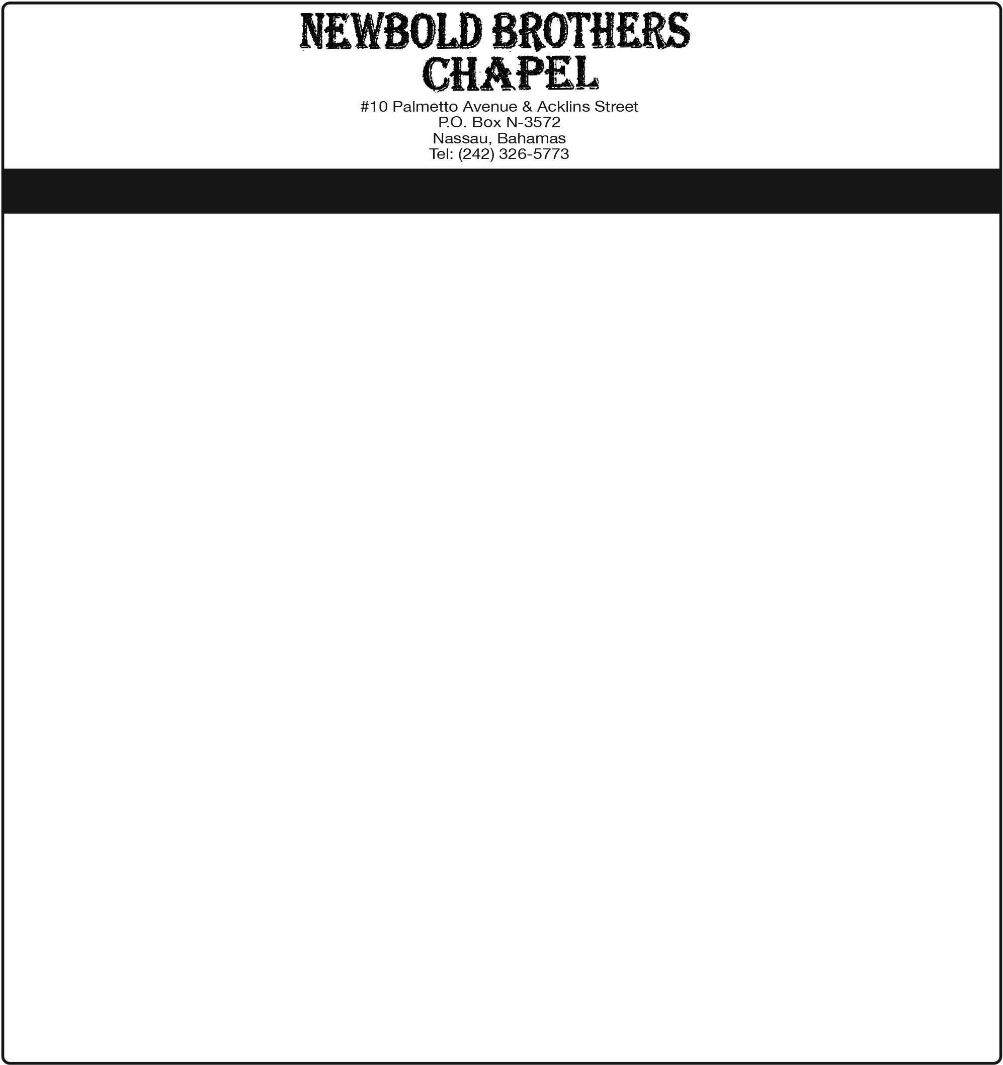 Fowler, Portia Newbold; brothers-in-law: Charles Newbold, William (Joyce) Newbold, Harrison (Norma) Newbold; adopted children: Kemuel Pratt, Wilmore Stuart, Craig Newbold, Kingsley Miller & Cedric Carey; other relatives & friends: Rev. Donny Newbold, Adonis, Dr. Ricardo, Alasandro, Annia, Sterling, Judith, Amanda, Lynda, Tiffany, Nicolette, Harrison Jr, Jawari & Logan Newbold, Nikita Rolle, Karlos & Karva Mackey, Shakira Seymour, Dr. Tamara Evans, Ayana Ferguson & Miguel Burrows, Mureno Cunningham, Jayla Stubbs, Milton Newbold, Elliot Lightbourne, Rev. Elvis Burrows, Thomas Jr, Micklyn & Travis Lightbourne, Dawson Smith, Andrea, Valerie & Sonia Lightbourne, Shirley Sturrup & Antoinette Richardson, Emrick Seymour, Octavious & Reuben Stuart, Vincet Newbold, Rev. Melton Newbold, Rev. Cecil Newbold, Dainette Bonimy, Christopher Stubbs, Verdell Munnings, Naomi Newbold, Ann Burrows & family, Enid Cambridge, Nurse Elaine Stuart, Nurse Mackey, Jenniemae Higgs, Rosadell Stubbs, Evelyn Bowles, Rev. Sandra Bowles, Altamese Carey, Sheba Webb & family, Irene Ramsey & family, Ruth Dean, Merilee and Fenamae, Rev. Minette Cripps, Rev. Berklyn Newbold, Rev. Fritz Stubbs, Alworth Rolle, Annabel Burrows, Kizzy Stuart, Delcena, Marvin & Will Stubbs, Marcus & Desmond Newbold, Trina Pratt, Mrs. Margaret Cleare & family, Ethlyn Rolle & family, Latario Smith & family, Teddiemae Bain & family, Lenamae, Debbie, Sylvia Mitchell & family, Soloist Yasmine Newbold & family, Mr. Ivan Blackman & family, Mr. Michael Harris & family, Dennis Thompson, Rev. Carrol Johnson & family, Dr. Kolli, Rev. Storr & family, Charles Campbell & family, Perry Williams & family, Danny King, Tito Thurston, Rev. Elva Dean, Mrs. Chriswell, Marion Johnson, Robert Bonimy, Chrissy Sargeant, Roston, Vera Moss, Brinette White, Linda, Cortez, Denny, Wallace, Vanny Turner, Geraldine Cruikshank, Winifred Munnings, Elec Farrington & family, Nurse Barton, Nurse Rolle, The entire community of Orange Creek, & Arthur’s Town, Cat Island, Great Bethel Methodist Church family, St. Mark’s Native Baptist Church family, & The entire Fox Hill community.
