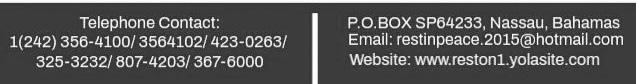 Viewing will be held in the “Serenity Suite” at Restview Memorial Mortuary and Crematorium Limited, #11-A Coral Road, Freeport, Grand Bahama on Friday from 10:00a.m. to 5:00p.m. and at the Church on Saturday from 8:30a.m. until service time.