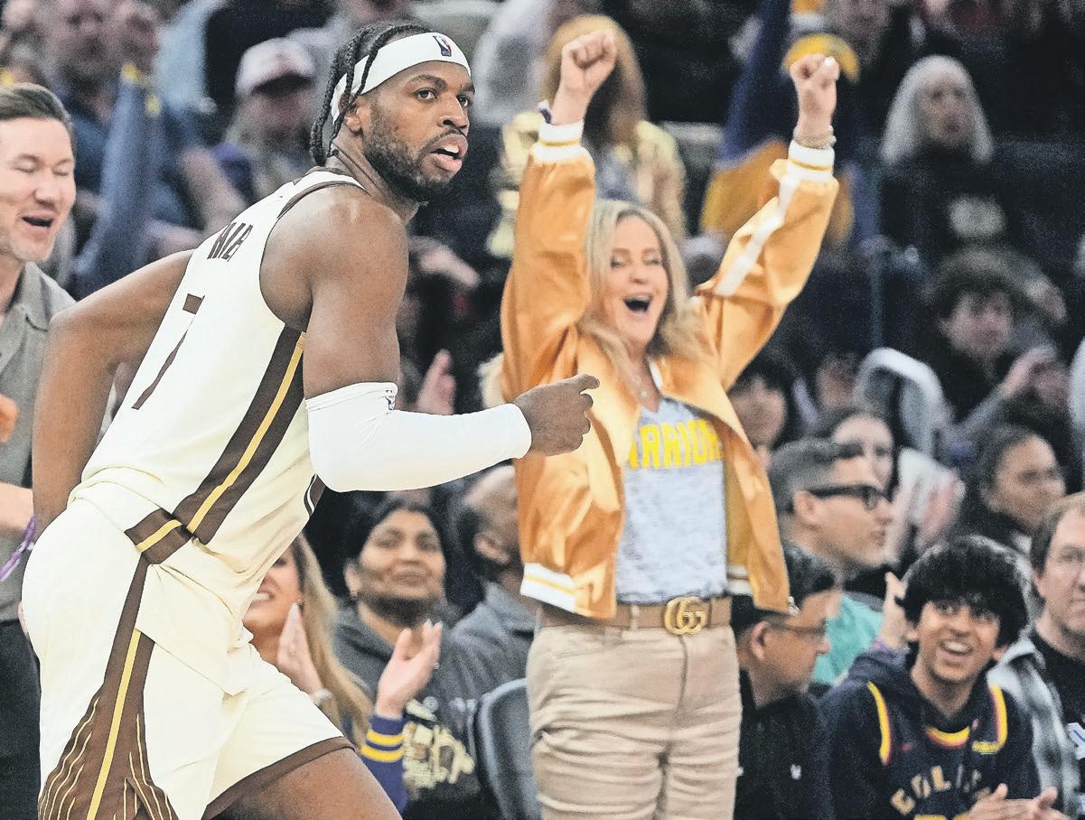 The Warriors led by as many as 15 in the first half after Podziemski hit a 3-pointer with three seconds left in the second quarter to make it 69-54.