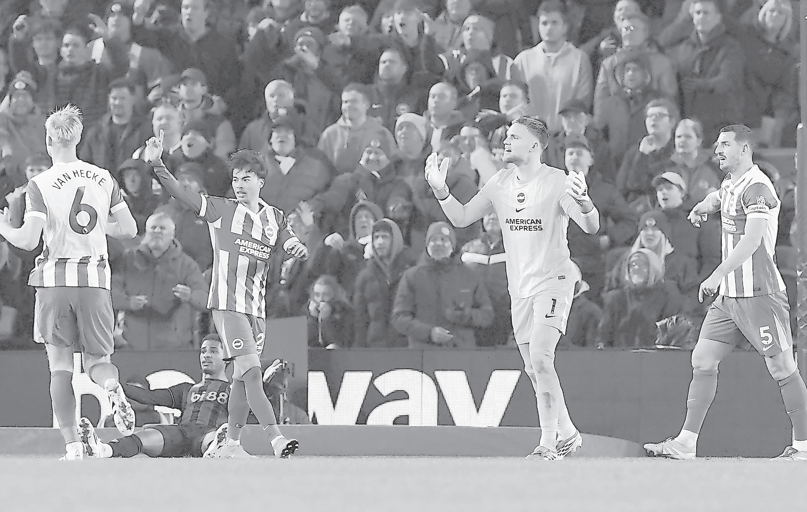 The result extends Brighton's unbeaten run to fve games and leaves it in 12th place in the Premier League, three points and three places above its south coast rivals.