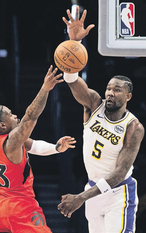 turned in one of the most efcient games of the NBA season in the Los Angeles Lakers’ 110–93 win over the Toronto Raptors on January 18. Ayton did not miss a shot, fnishing 10-for-10 from the feld for 25 points and 13 rebounds in 33 minutes. Every basket came in rhythm, almost all at the rim, as he controlled the paint.