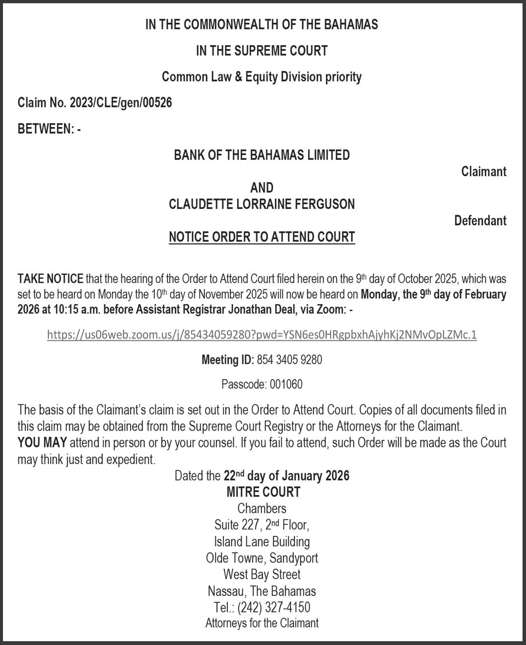 “This year will be a crucial year for the financial services sector as The Bahamas makes preparation for the Caribbean Financial Action Task Force (CFATF) fifth round mutual evaluation exercise. The actual on-site visit is scheduled for 19-30 October, 2026,” the Central Bank said in its latest quarterly update to licensees.