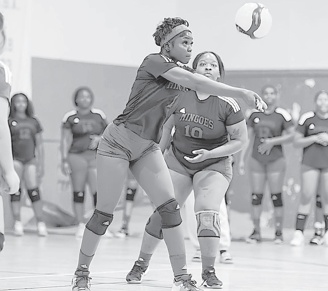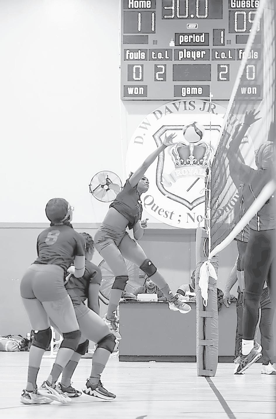 THE University of The Bahamas Mingoes women’s volleyball team players in action against Tech Titans in the New Providence Volleyball Association (NPVA) action on Wednesday, January 21 at the D.W. Davis Gymnasium. UB won 3-0.