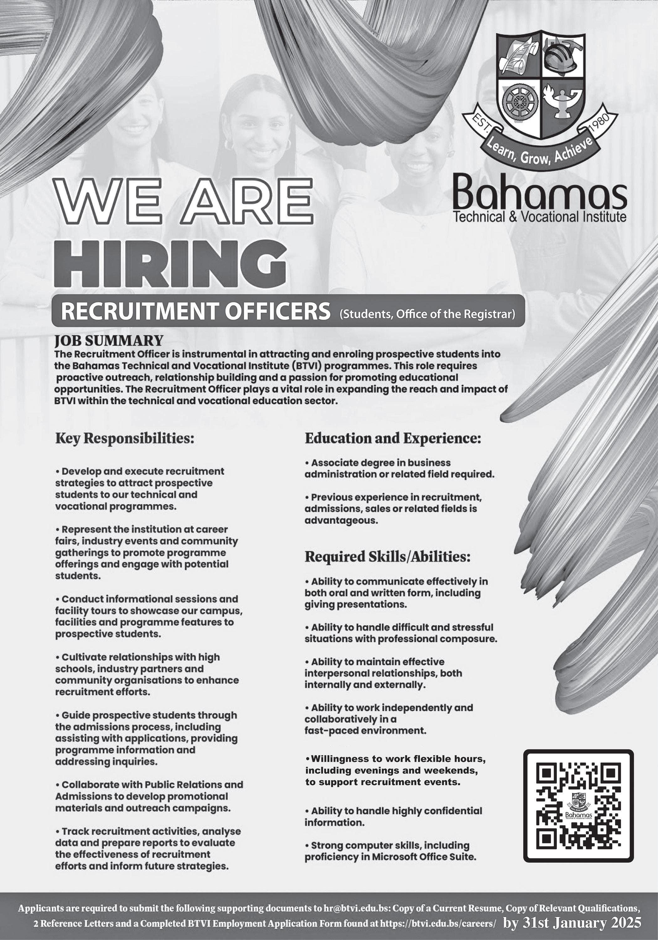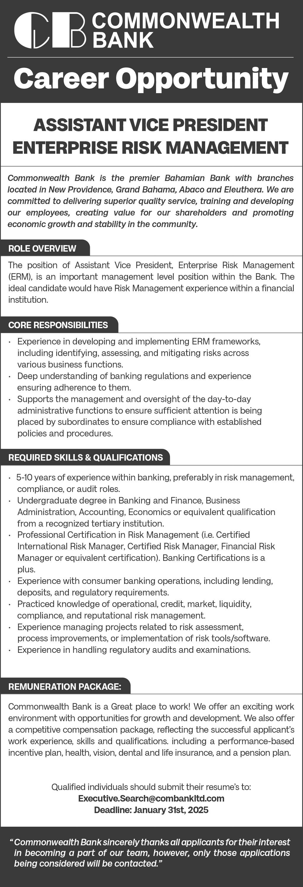 Interested persons can submit their application by January 31, 2025 to: Attention of the Human Resources Manager. Hard Copy: The D’Albenas Agency Ltd., Palmdale; or email: HR@dalbenas.com