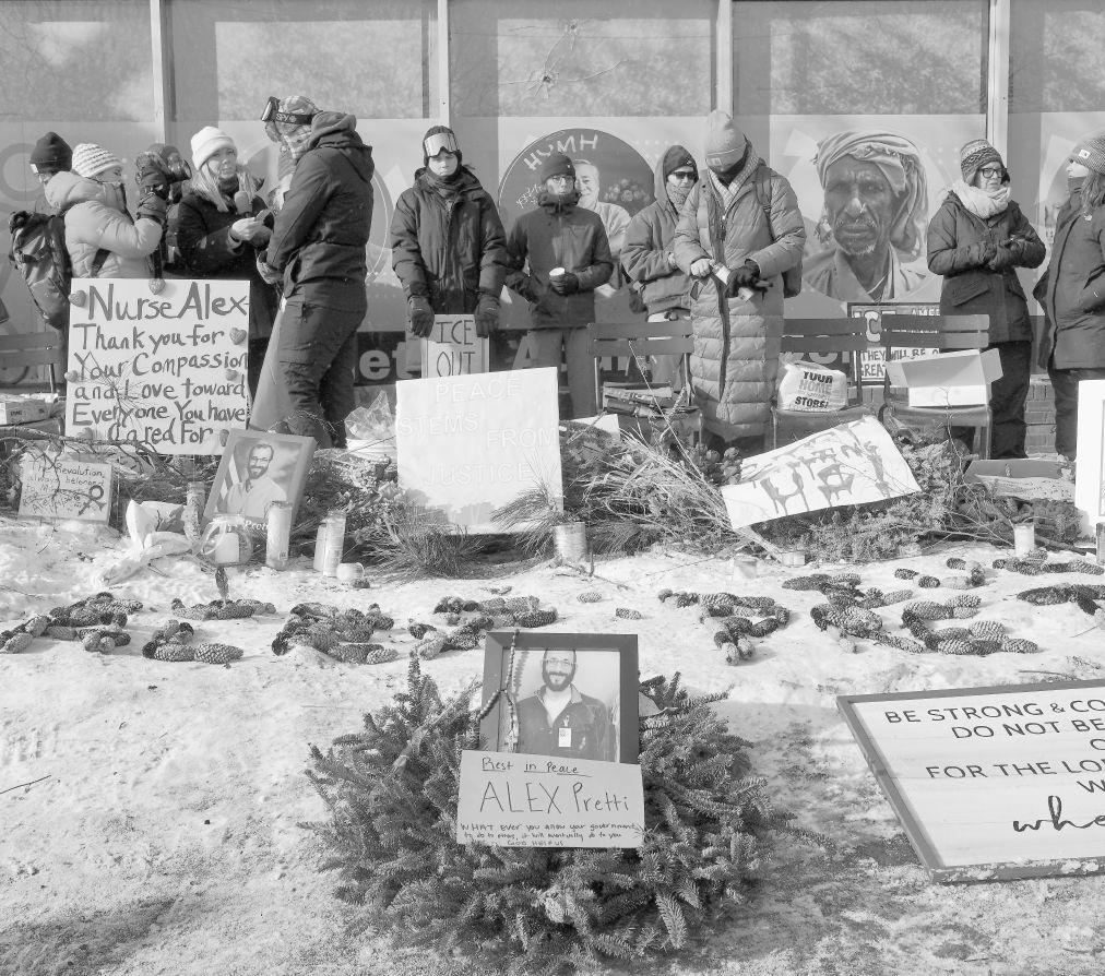 PEOPLE gather near the scene where Alex Pretti was fatally shotbya U.S.BorderPatrolofficer yesterday,inMinneapolis, Sunday, Jan. 25, 2026.