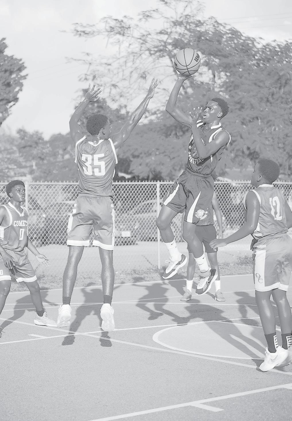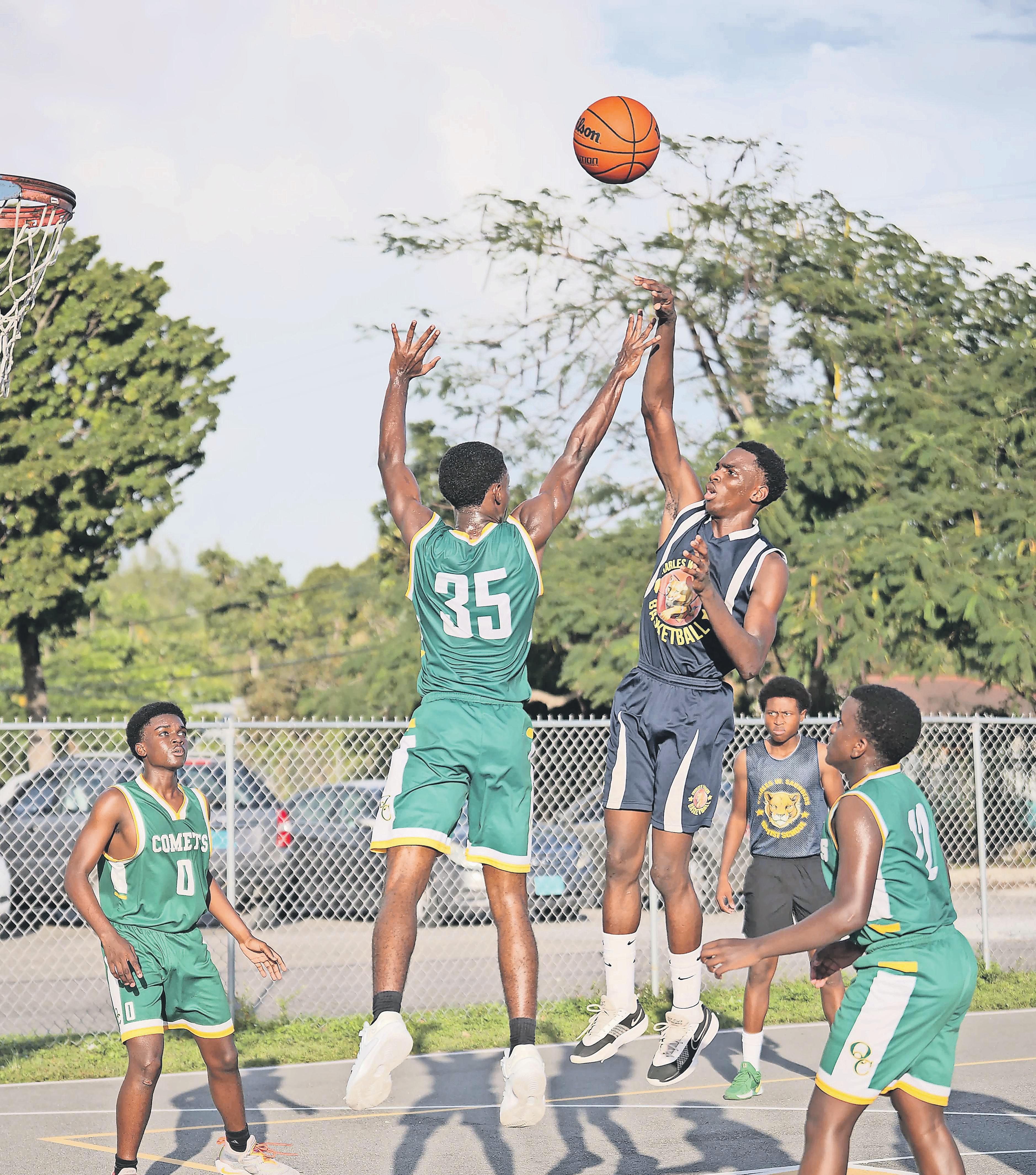 HANGTIME: The Charles W Saunders Cougars senior boys’ basketball team yesterday knocked off the Queen’s College Comets 61-35 on their home court at Charles W Saunders High School in the Bahamas Association of Independent Secondary Schools action. In their bid to regain the title they last held in 2024, the Cougars have surged ahead of the standings with a perfect 11-0 win-loss record with three more games left in the regular season.