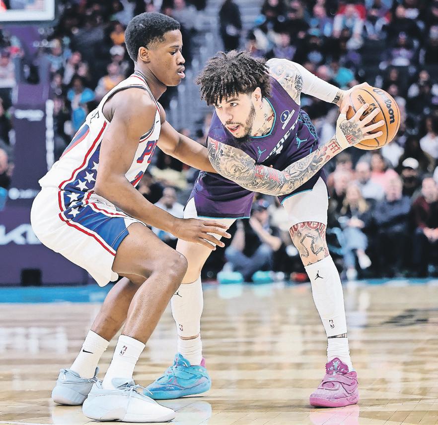 It was 28-22 after one quarter — and then Charlotte outscored Philadelphia 81-37 over the next two quarters, taking a 109-59 lead into the fourth.