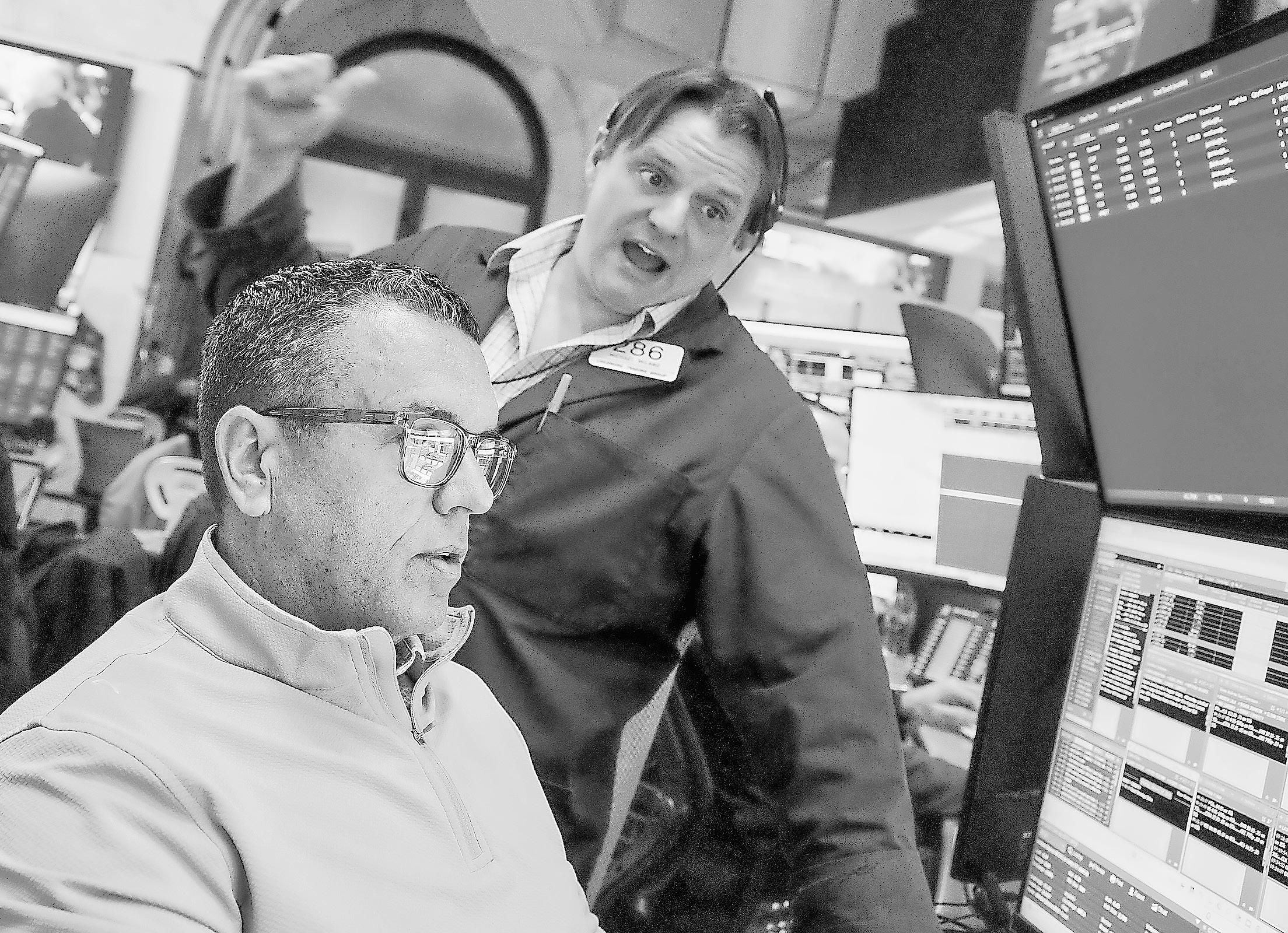 TRADERS Robert Finnerty Jr., foreground, and Michael Milano work on the floor of the New York Stock Exchange, Monday, Jan. 26, 2026.