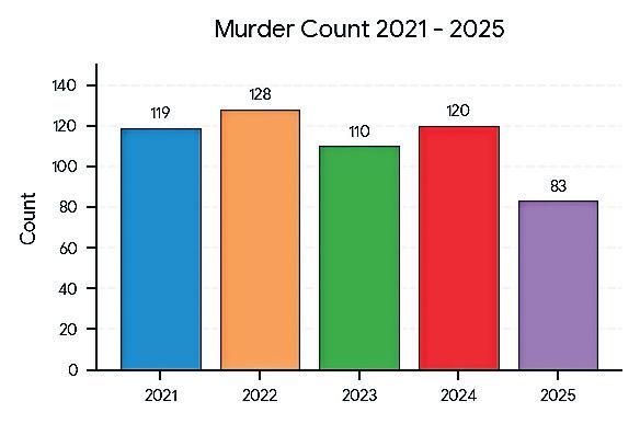 • 2025 figures reveal steep decline in murders, armed robberies and other major offences