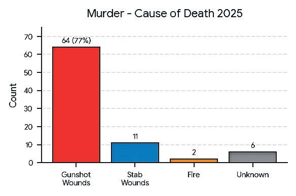 Homicides declined by 31 percent, from 120 in 2024 to 83 in 2025. New Providence accounted for 76 killings, the Family Islands four and Grand Bahama three. Victims aged 18 to 45 made up 83 percent of homicide victims, with retaliation, gang activity and personal conflict accounting for 43 percent of known motives. Firearms were used in 64 cases, and males represented 93 percent of victims. Ms Knowles said this was the largest percentage drop in homicides since national crime tracking began in 1963 and the lowest number recorded in a comparable policing environment since 2008. Armed robberies fell by 39 percent, from 265 to 162 cases. More than half were concentrated in the Southeastern, Southwestern and South Central divisions. Firearms remained the primary weapon, 60 vehicles were stolen and 38 percent were recovered. Males accounted for 67 percent of victims. Non-armed robberies declined by 22 percent, from 59 to 46 cases, while housebreakings fell by nearly half, from 331 to 170 incidents.