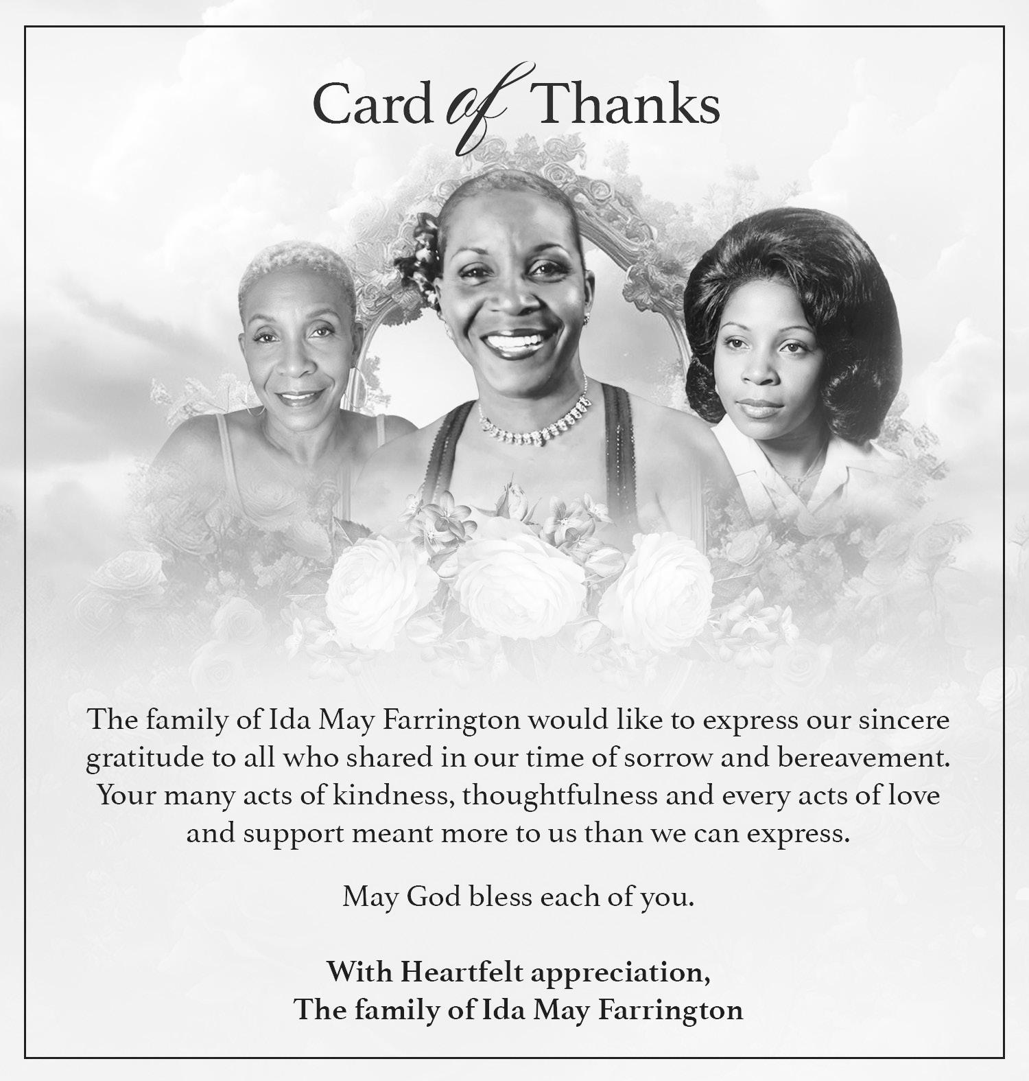 Left to cherish her memories are her, Children: Bradford Hanna, Barry Smith (Chandika), Brian Cartwright (Lisa), Trevor Lightbourne, William Smith (Nicola), Crispin Smith (Marion), Deborah Cartwright, Donna Bullard, Dellareese Bryant, Keva Williams (George), Hilda Flowers. Grandchildren: Harcourt Carter III; Dahar Carter (deceased); Chezarae; Anastasia; Amber; Avonleh Carter; Adahliah Carter; Anais Bartlett; Tanika Seymour; Robyn Hanna; Ryan Hanna; Alexiou Higgs; Dexter Bullard; Deidre Bullard; Dyanza Cartwright; D’Audra Thompson; D’Kira Cartwright; Leon Rahming; Deon Rahming; Toni Rahming; Jarrett Flowers; Adria Knowles; Anfernee Smith; Brian Cartwright Jr.; Justin Cartwright; Chance Cartwright; Janine Ferguson; Dion; Trevor Jr.; Trevon; Trevin; Heastinique; Trenique; Sapphire Lightbourne; Nashad Smith; Jayden Smith. Great-Grandchildren: Aidan Carter; Carina Carter; Giancarlo; Zeke Maximus; Luke Maximus; Catalina Carey; Cruz Carter; Jayden Seymour; Tiah Seymour; Camille Hanna; Kalani Hanna; Alex Jr.; Asiah Higgs; Hazel Higgs; Jailyn; Janae Thompson; Jasmine Thompson; Jefaya Rahming; Jaylyn Rahming; Bella Flowers; D’Angelo; D’Nalah; Haven; Taliah; Trevor III; Trevin Jr.; Deliyah Lightbourne; Anthony Lightbourne; Nashad Smith Jr.; Nieces: Bernadette Miller; Sabrina Wright; Tanya Davis; Cheryl; Lisa; Tricia Thurston; Marguerite Burrows. Nephews: Terrence Cartwright; Trevor Neely; Henry Jr.; Haywood; Harry; Godfrey; Peter; Julian Thurston. A host of grand nieces and nephews too numerous to mention. Other Relatives and Friends: Leslie Benoit and family; Jill Thompson Wallace and family; Treva Smith and her entire family; Eric Ferguson and family; Billy Joseph and family; Willard Stubbs and family; Shawn and Nicole Knowles and family; Elgin Forbes; the William Dorsett family; Rose Moss and family; the Williams family (Charles, Pedro, Mario, and Jeorjette). Special thanks to: Dr. Denotra Archer Cartwright, caretaker; Erilia Simon; the management and staff of Atlantis and Breezes; and the entire Vision Community Church family.