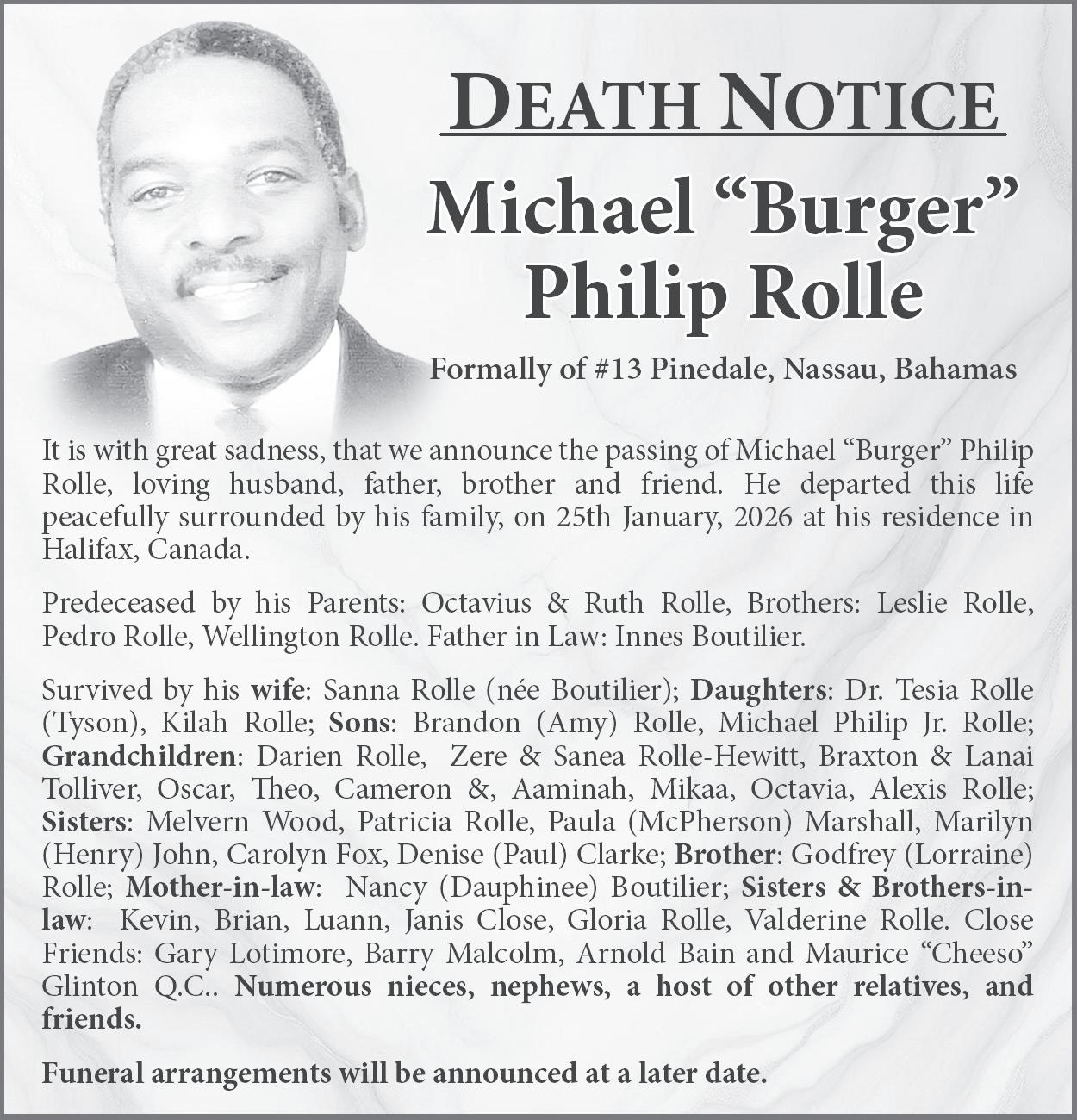 Memorial Service will be held on Saturday, February 14, 2026 at Bethel Baptist Church, Meeting Street, New Providence, Bahamas.