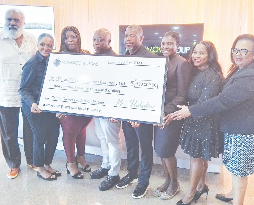 EXECUTIVES of the Movi Group and Local Organising Committee for the CARIFTA Games at the cheque presentation.