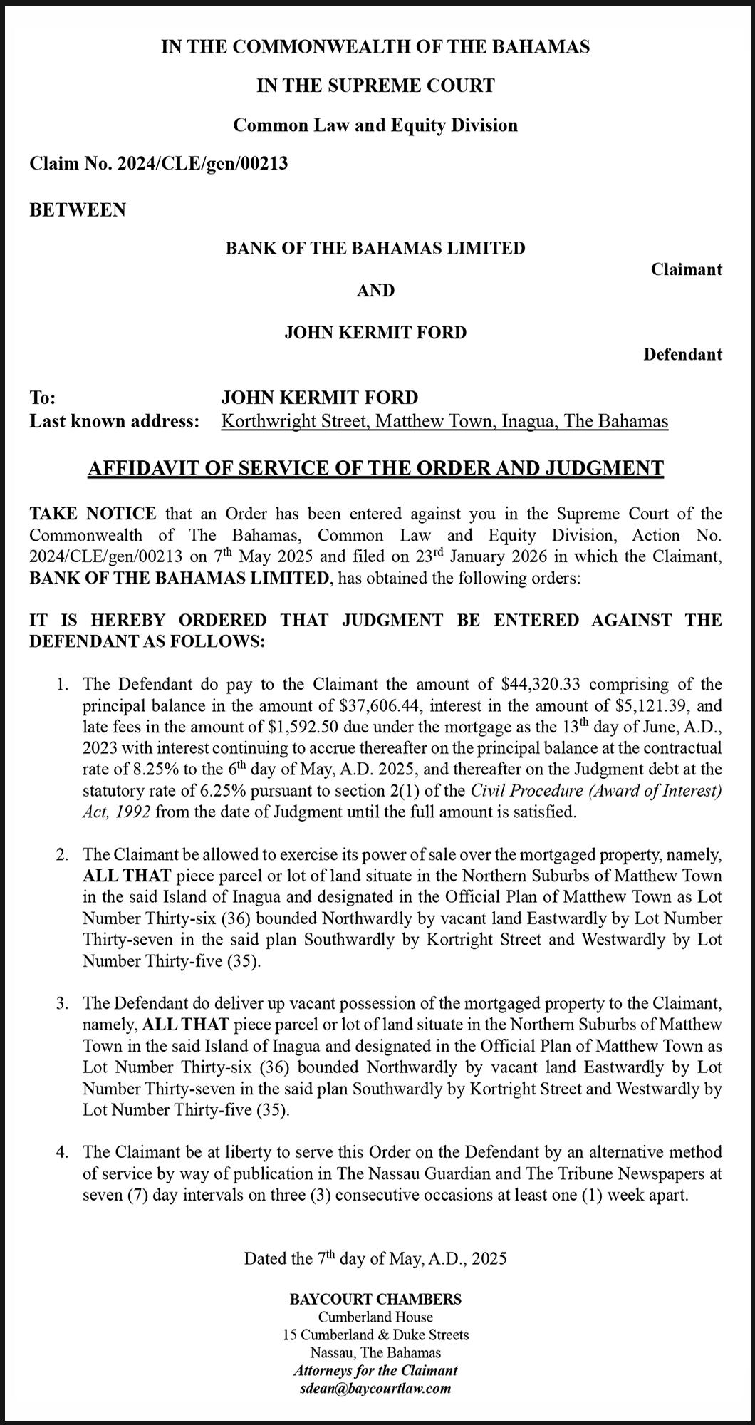 NOTICE is hereby given that INELIA SAINTINOME TUCKER of Curry Mission Road, New Providence, Bahamas is applying to the Minister responsible for Nationality and Citizenship, for registration/ naturalization as a citizen of The Bahamas, and that any person who knows any reason why registration/naturalization should not be granted, should send a written and signed statement of the facts within twenty-eight days from the 26th day of January, 2026 to the Minister responsible for nationality and Citizenship, P.O. Box N-7147, Nassau, Bahamas.