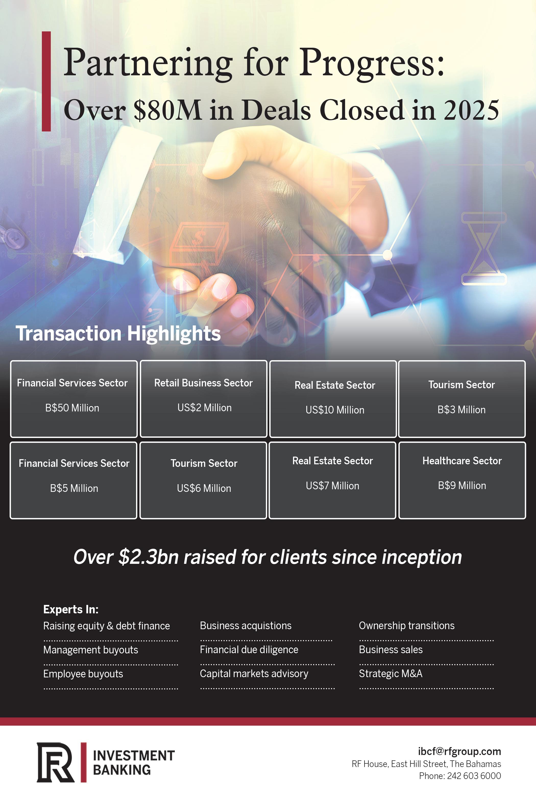 Disclosing that RF Bank & Trust and its afliates expect to be involved in between $50m-$100m worth of capital-raising transactions themselves in 2026, he added that when other investment houses are included the total amount raised from investors seeking higher returns than the negligible interest available on bank deposits could easily be double the latter fgure.