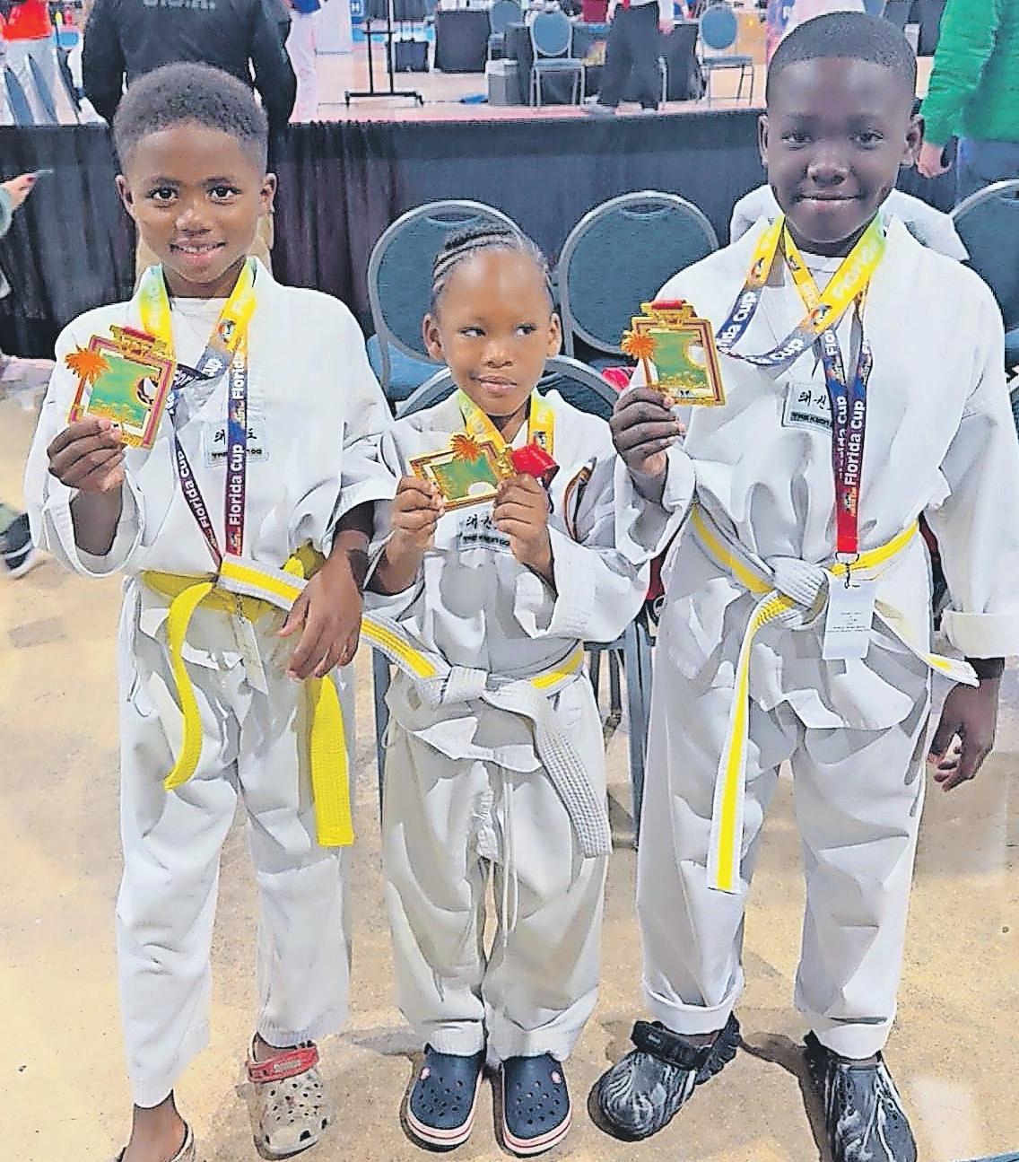 The trio competed in Olympic sparring and board breaking, showcasing not only their skills but also remarkable courage and composure against larger and more experienced teams from the region.