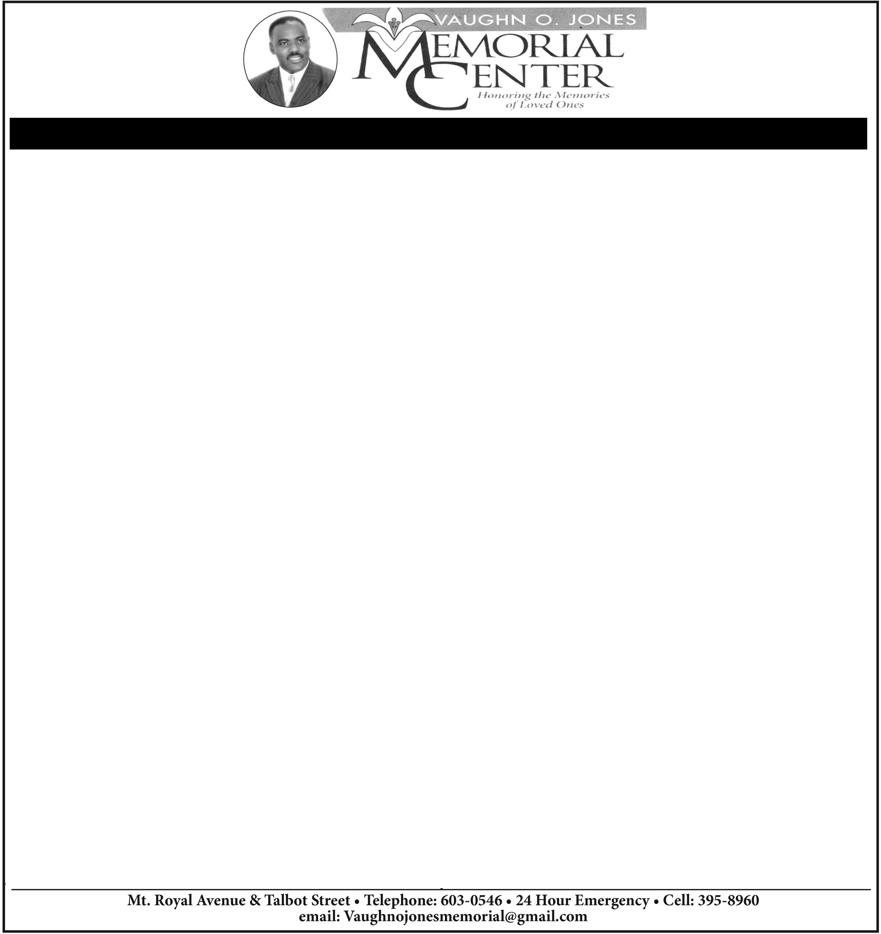 Her memory will always live on in the hearts of her husband: Ledley Miller; sons: Troy and Aldrico Thompson; daughter: Ledleya Miller; daughterin-law: Jade Clarke Thompson; 8 grandchildren; brothers: Anthony Thompson & Oscar Brennen; sister: Rafaletta Thompson Missick; sisters-in-law: Monique Thompson, Georgetta Kathy Brennen; aunt: Ruth Thompson; 10 nieces, 8 nephews and a host of other relatives and friends.